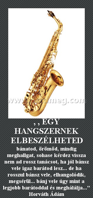 Egy hangszernek - ,,Egy hangszernek elbeszélheted bánatod, örömöd, mindig meghallgat, sohase kérdez vissza, nem ad rossz tanácsot, ha jól bánsz vele igaz barátod lesz... de ha rosszul bánsz vele, elhangolódik, megsérül... bánj vele úgy mint a legjobb barátoddal és meghálálja..." Horváth Ádám