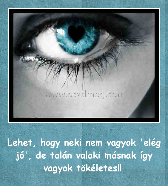 - Szerelem- annyi kínnal és fájdalommal jár, mégis vágyunk arra, hogy a magunkénak tudjuk, hogy érezzük...hogy valakit annyira szeressünk, hogy az életünket adjuk érte, hogy valakiben annyira bízzunk, hogy megosszuk vele legféltettebb titkainkat! Kín és öröm, fájdalom és boldogság, remény és beteljesülés. Ellenkező dolgok, melyeket mindenki tapasztalt már. Ez a szerelem, valakinek összejön, valakinek nem! Mérhetetlen boldogságot tudhat magáénak az, aki szeret, s viszont szeretik. Számára az élet maga a mennyország. Viszont a poklot járja meg az, aki szeret, de nem szeretik. Tudja, hogy nem szabadna, hogy lehetetlen s reménytelen, de mégis szeret s vágyakozik, mert szíve mélyén a remény mindig ott lakozik!